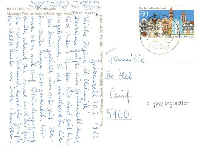 73722255 alte Postkarte Groebenzell Modernes Wohnzentrum Muenchen-West postalisch gelaufen Erhaltung siehe scans [LiesaD40] KatCode: 11110009179126