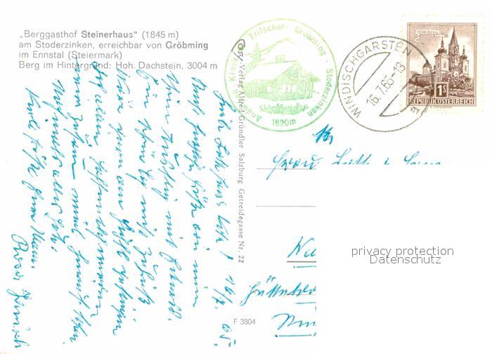 72803539 alte Postkarte Groebming Steiermark Berggasthof Steinerhaus am Stoderzinken Ennstal Hoher Dachstein postalisch gelaufen Erhaltung siehe scans [FriedD77] KatCode: 11390222061213