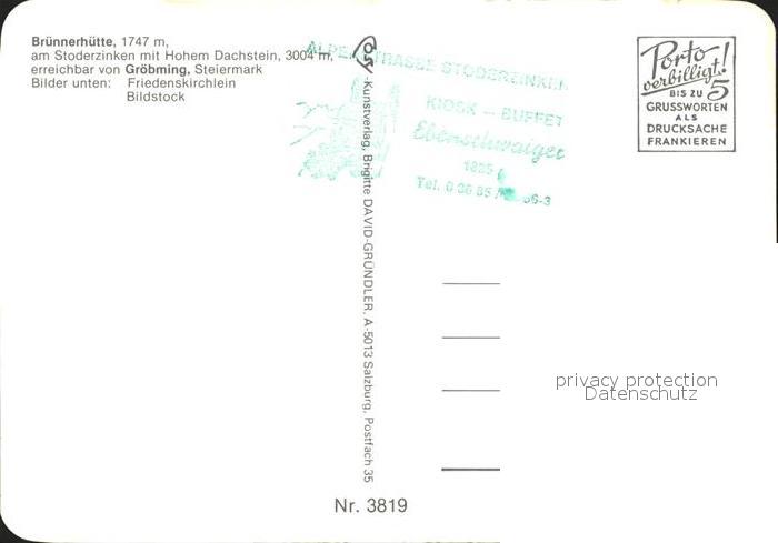 72016821 Groebming Steiermark Bruennerhuette am Stoderzinken mit Hohem Dachstein postalisch nicht gelaufen KatCode: 11390222061213