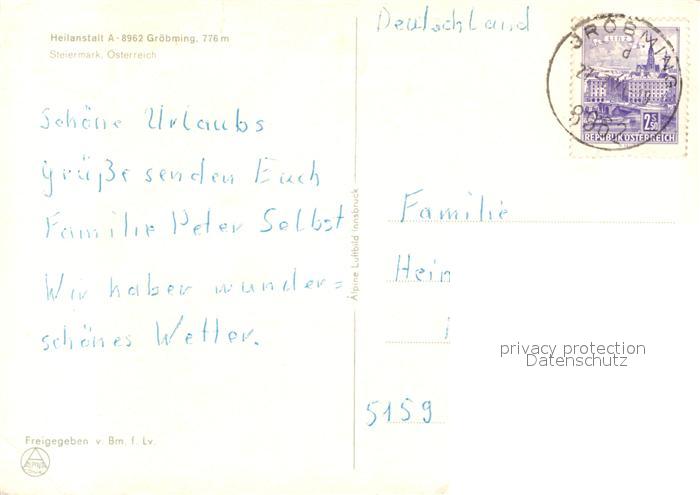 73587086 alte Postkarte Groebming Steiermark Fliegeraufnahme postalisch gelaufen Erhaltung siehe scans [WerneD78] KatCode: 11390222061213