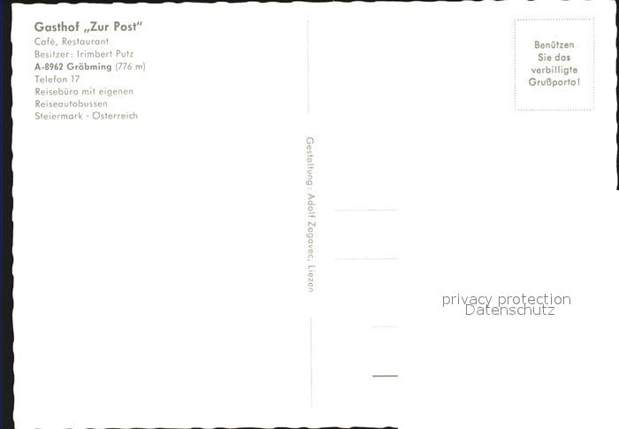72417549 Groebming Steiermark Gasthaus Zur Post postalisch nicht gelaufen Erhaltung siehe scans KatCode: 11390222061213