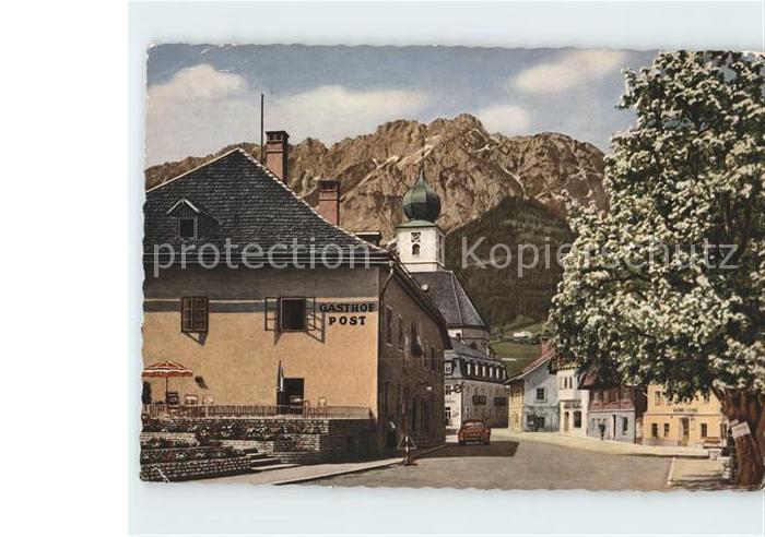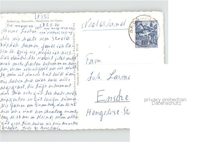 71903646 alte Postkarte Groebming Steiermark Hauptplatz mit Kamm Baumbluete postalisch gelaufen Erhaltung siehe scans KatCode: 11390222061213