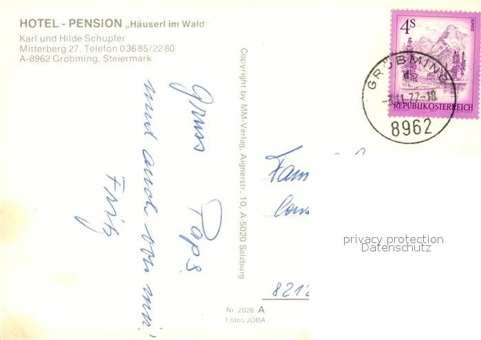 13232249 alte Postkarte Groebming Steiermark Hotel Haeserl im Wald postalisch gelaufen Erhaltung siehe scans [NatalD47] KatCode: 11390222061213