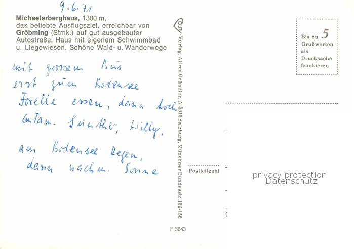 72665092 Groebming Steiermark Michaeler Berghaus Schwimmbad postalisch nicht gelaufen Erhaltung siehe scans [WerneD78] KatCode: 11390222061213