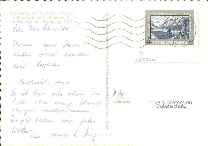 71708953 alte Postkarte Groebming Steiermark Panorama Oberes Ennstal mit Grimming Dachsteingebirge postalisch gelaufen Erhaltung siehe scans KatCode: 11390222061213