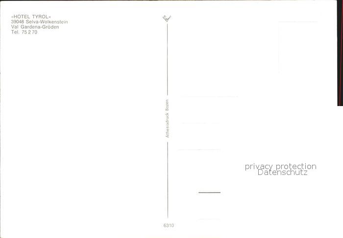 Groeden Tirol Hotel Tyrol Val-Gardena postalisch nicht gelaufen Erhaltung siehe scans [LiesaD40 kt120box]