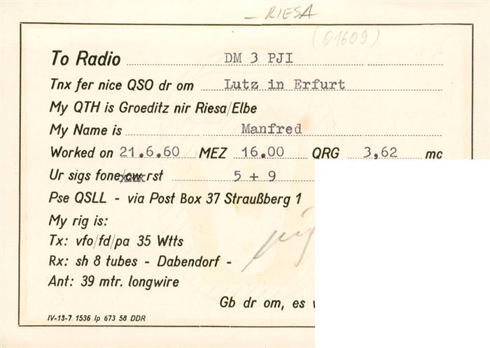 73890119 Groeditz Riesa Sachsen VEB Stahl und Walzwerk postalisch nicht gelaufen Funkerkarte Erhaltung siehe scans [WerneD78] KatCode: 11110014285090