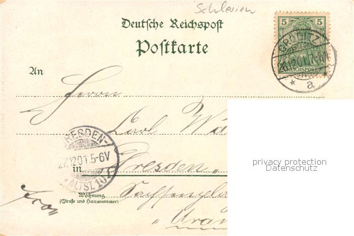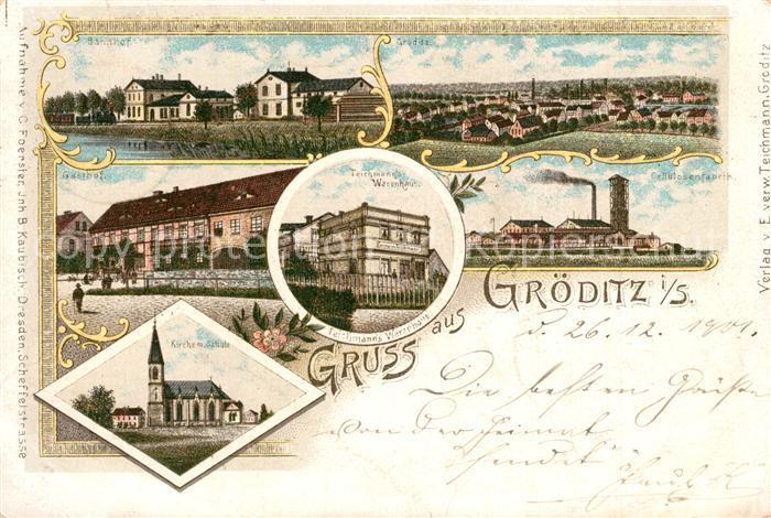 33549703 old postcard Groeditz Schlesien Kirche Schule Warenhaus postalisch gelaufen Erhaltung siehe scans [KathaD81] KatCode: 11520