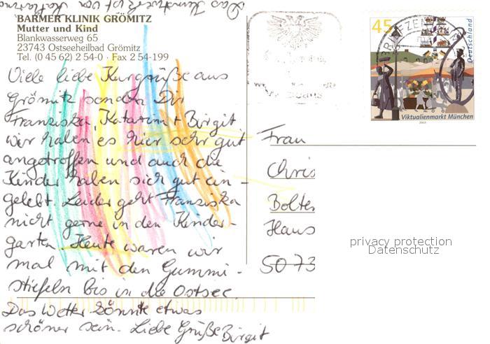 73027814 alte Postkarte Groemitz Ostseebad Barmer Klinik Mutter und Kind postalisch gelaufen Erhaltung siehe scans [KathaD81] KatCode: 11110001055016