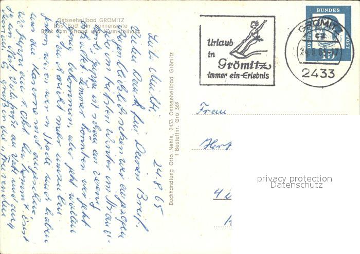 72064802 alte Postkarte Groemitz Ostseebad Blick zum Strand und Kurmittelhaus postalisch gelaufen Erhaltung siehe scans KatCode: 11110001055016
