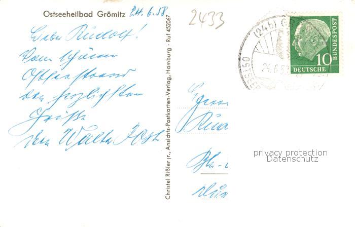 73566154 alte Postkarte Groemitz Ostseebad Bootssteg Seebruecke postalisch gelaufen Erhaltung siehe scans [WerneD78] KatCode: 11110001055016