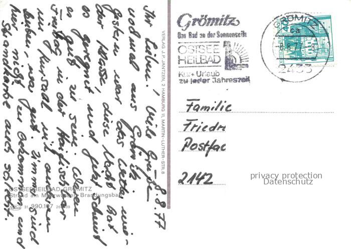 74085217 alte Postkarte GRoeMITZ Ostseebad Brandungsbad Strand postalisch gelaufen Erhaltung siehe scans [WerneD78] KatCode: 11110001055016