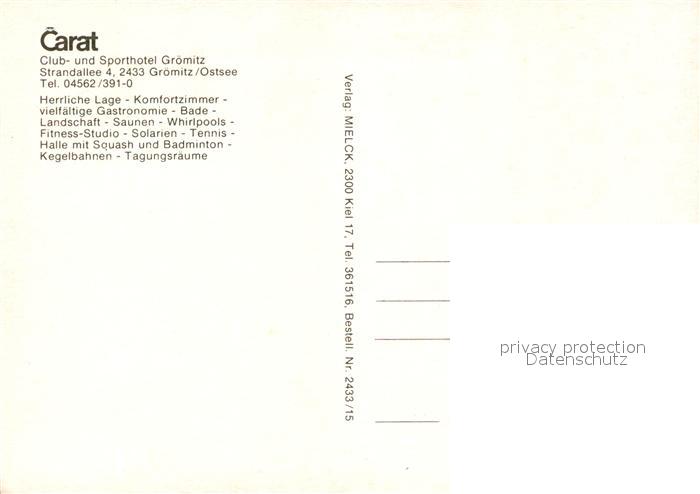 73109182 Groemitz Ostseebad Club Sporthotel Carat postalisch nicht gelaufen Erhaltung siehe scans [KathaD81] KatCode: 11110001055016