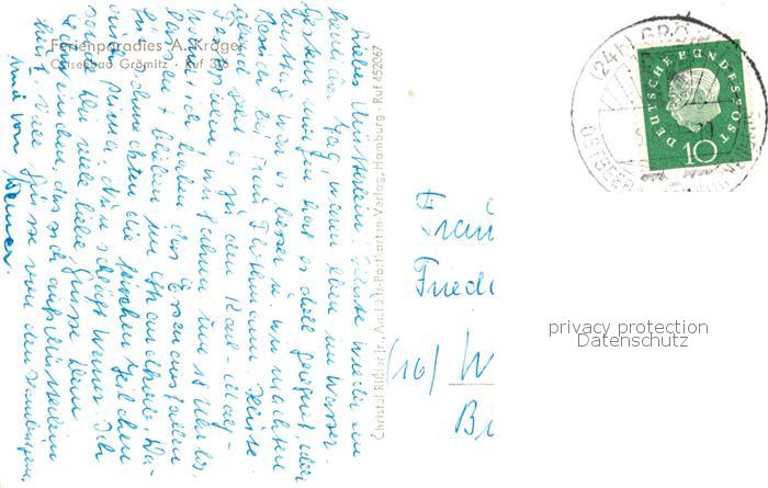 73830343 alte Postkarte Groemitz Ostseebad Ferienparadies Kroeger postalisch gelaufen Erhaltung siehe scans [FriedD77] KatCode: 11110001055016