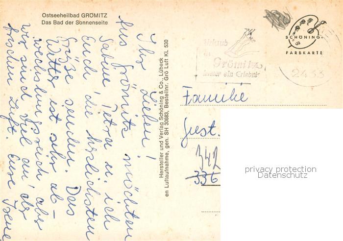 73774982 alte Postkarte Groemitz Ostseebad Fliegeraufnahme postalisch gelaufen Erhaltung siehe scans [WerneD78] KatCode: 11110001055016