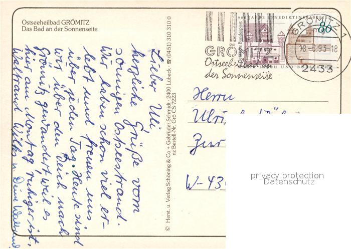 73541992 alte Postkarte Groemitz Ostseebad Fliegeraufnahme postalisch gelaufen Erhaltung siehe scans [WerneD78] KatCode: 11110001055016