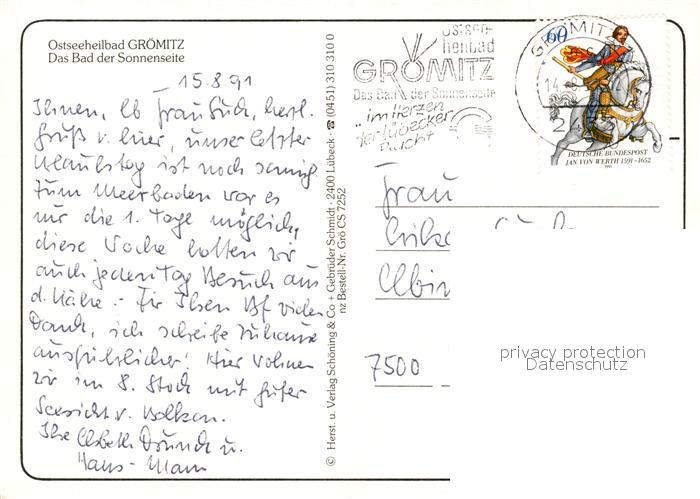 73211778 alte Postkarte Groemitz Ostseebad Fliegeraufnahme postalisch gelaufen Erhaltung siehe scans [WerneD78] KatCode: 11110001055016