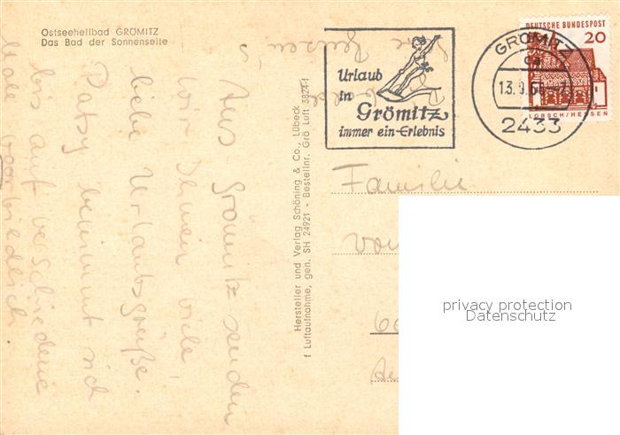 73124441 alte Postkarte Groemitz Ostseebad Fliegeraufnahme postalisch gelaufen Erhaltung siehe scans [KathaD81] KatCode: 11110001055016