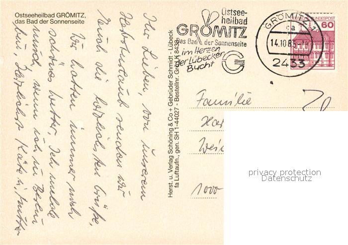 73087447 alte Postkarte Groemitz Ostseebad Fliegeraufnahme postalisch gelaufen Erhaltung siehe scans [NatalD47] KatCode: 11110001055016