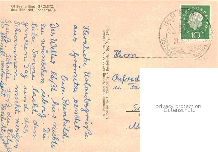 72913799 alte Postkarte Groemitz Ostseebad Fliegeraufnahme postalisch gelaufen Erhaltung siehe scans [KathaD81] KatCode: 11110001055016