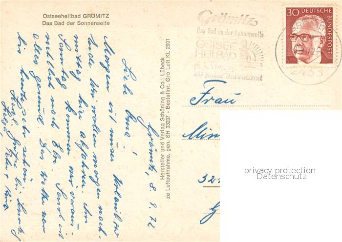 73757118 alte Postkarte Groemitz Ostseebad Fliegeraufnahme Campingplatz Strand postalisch gelaufen Erhaltung siehe scans [LiesaD40] KatCode: 11110001055016