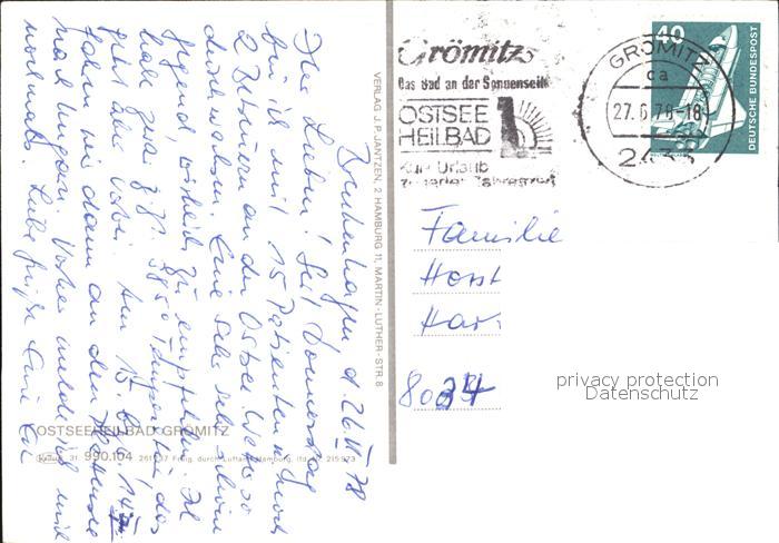 72449623 alte Postkarte Groemitz Ostseebad Fliegeraufnahme mit Hafen und Strand postalisch gelaufen Erhaltung siehe scans KatCode: 11110001055016