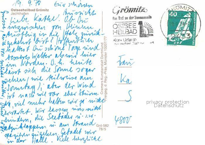 72872684 alte Postkarte Groemitz Ostseebad Fliegeraufnahme mit Jachthafen Strand postalisch gelaufen Erhaltung siehe scans [LiesaD40] KatCode: 11110001055016