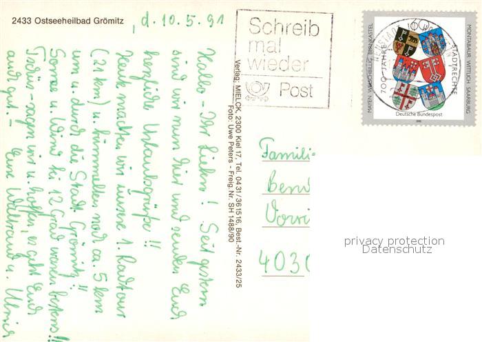 73541980 alte Postkarte Groemitz Ostseebad Fliegeraufnahme mit Seebruecke postalisch gelaufen Erhaltung siehe scans [WerneD78] KatCode: 11110001055016