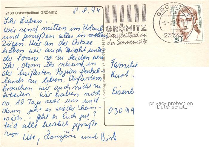 73727360 alte Postkarte Groemitz Ostseebad Fliegeraufnahme mit Seebruecke postalisch gelaufen Erhaltung siehe scans [WerneD78] KatCode: 11110001055016