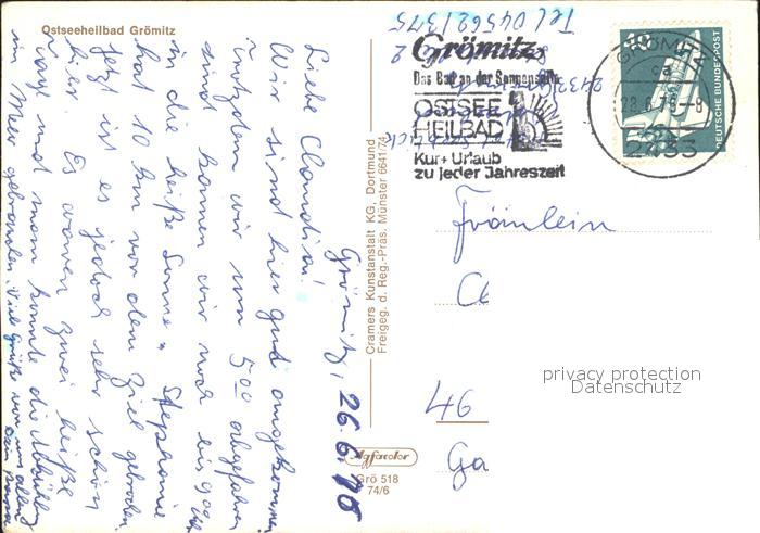 72231557 alte Postkarte Groemitz Ostseebad Fliegeraufnahme mit Strand postalisch gelaufen Erhaltung siehe scans KatCode: 11110001055016