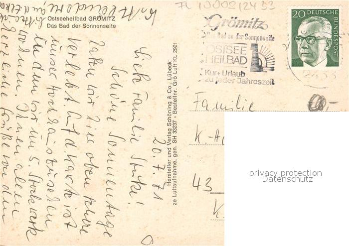 73167728 alte Postkarte Groemitz Ostseebad Fliegeraufnahme mit Strand postalisch gelaufen Erhaltung siehe scans [LiesaD40] KatCode: 11110001055016