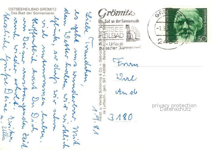 73173170 alte Postkarte Groemitz Ostseebad Fliegeraufnahme mit Strand postalisch gelaufen Erhaltung siehe scans [LiesaD40] KatCode: 11110001055016
