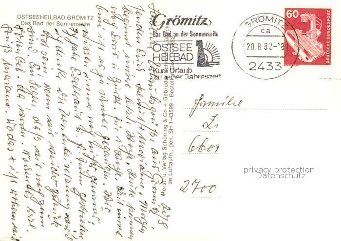 73124272 alte Postkarte Groemitz Ostseebad Fliegeraufnahme Strand postalisch gelaufen Erhaltung siehe scans [KathaD81] KatCode: 11110001055016