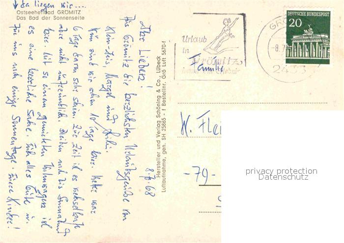 72888898 alte Postkarte Groemitz Ostseebad Fliegeraufnahme Strand postalisch gelaufen Erhaltung siehe scans [AndreD76] KatCode: 11110001055016