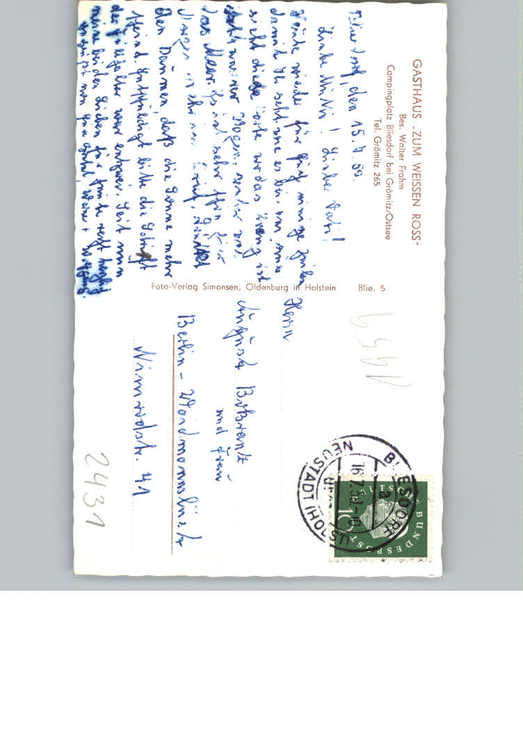 31121582 Groemitz Ostseebad Gasthaus z. weissen Ross postalisch nicht gelaufen KatCode: 11110001055016