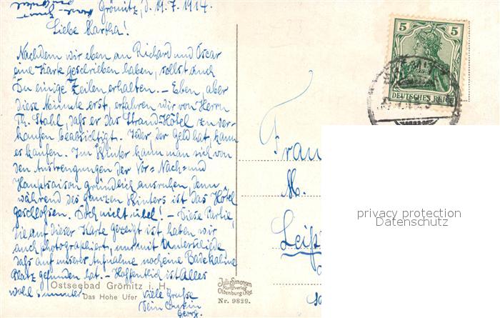 73171841 alte Postkarte Groemitz Ostseebad Hohes Ufer Strand postalisch gelaufen Erhaltung siehe scans [FriedD77] KatCode: 11110001055016