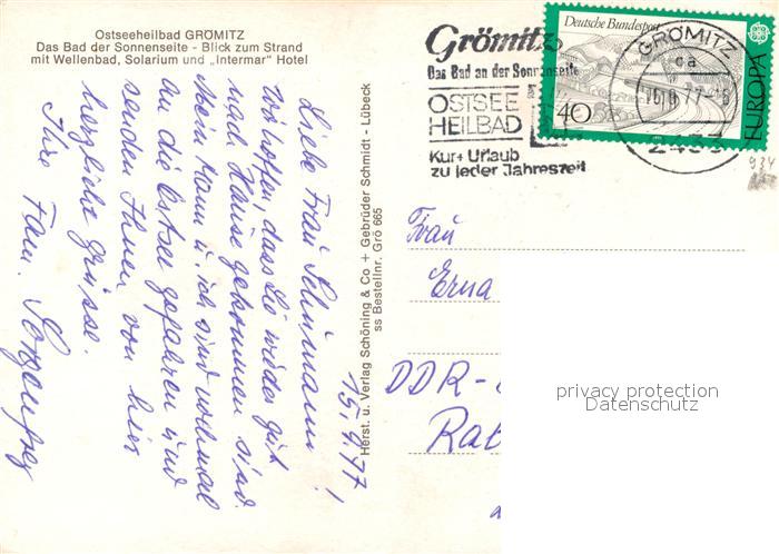 73167486 alte Postkarte Groemitz Ostseebad Hotel Intermar Strand postalisch gelaufen Erhaltung siehe scans [KathaD81] KatCode: 11110001055016