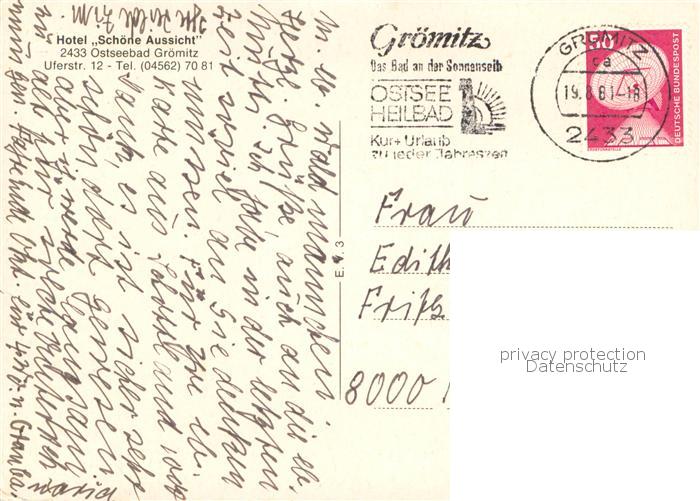 73768582 alte Postkarte Groemitz Ostseebad Hotel Schoene Aussicht Freiterrasse Strand postalisch gelaufen Erhaltung siehe scans [WerneD78] KatCode: 11110001055016