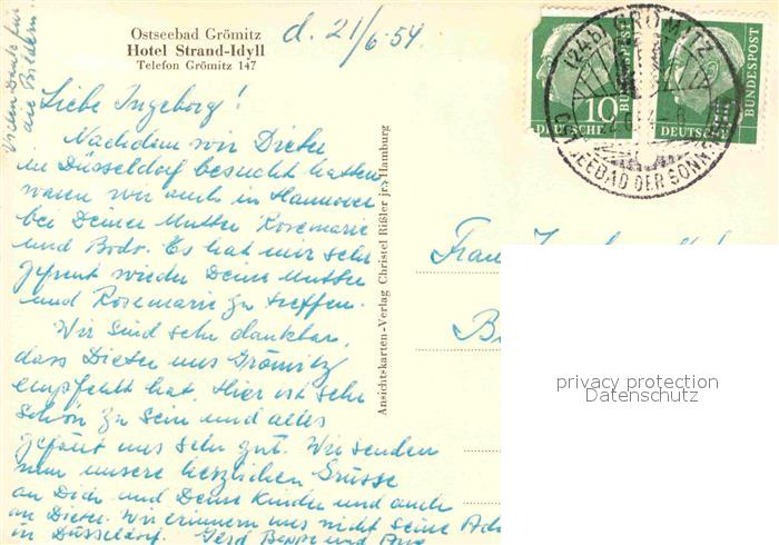 72697809 alte Postkarte Groemitz Ostseebad Hotel Strand Idyill Strandkoerbe postalisch gelaufen Erhaltung siehe scans [KathaD79] KatCode: 11110001055016