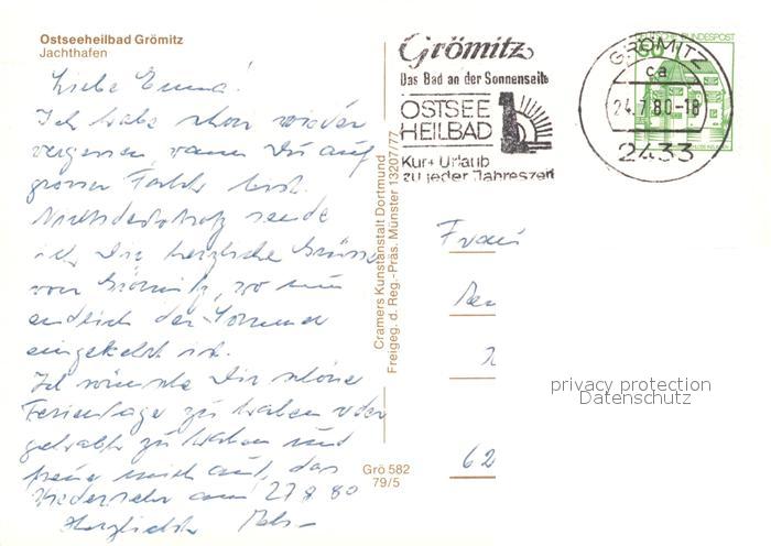 73540963 alte Postkarte Groemitz Ostseebad Jachthafen Fliegeraufnahme postalisch gelaufen Erhaltung siehe scans [WerneD78] KatCode: 11110001055016