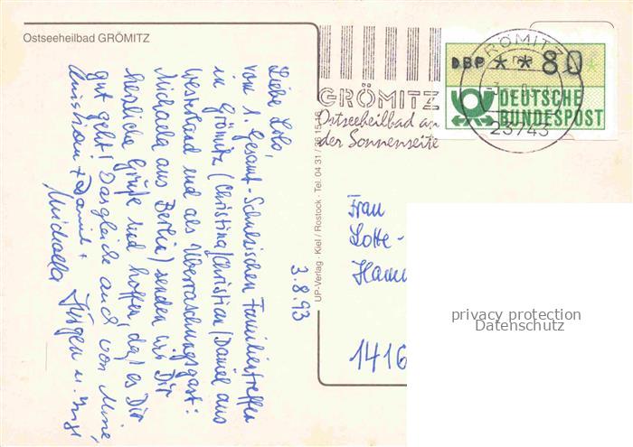 74040517 alte Postkarte GRoeMITZ Ostseebad Kuestenpanorama Strand Ostseeheilbad postalisch gelaufen Fliegeraufnahme Erhaltung siehe scans [FriedD77] KatCode: 11110001055016