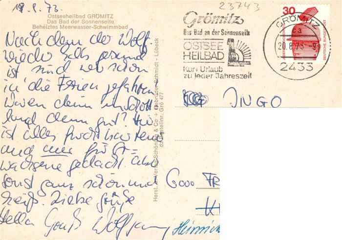 73892331 alte Postkarte Groemitz Ostseebad Meerwasser Schwimmbad postalisch gelaufen Erhaltung siehe scans [WerneD78] KatCode: 11110001055016