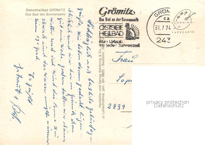 73687466 alte Postkarte Groemitz Ostseebad Ostseeheilbad Bad an der Sonnenseite Fliegeraufnahme postalisch gelaufen Erhaltung siehe scans [FriedD77] KatCode: 11110001055016