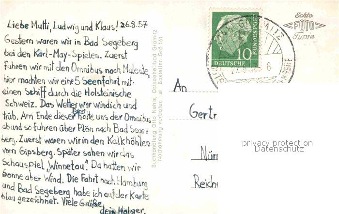 72890459 alte Postkarte Groemitz Ostseebad Promenade Strand Bruecke Strandhalle Markt Fliegeraufnahme Landkarte postalisch gelaufen Erhaltung siehe scans [FriedD77] KatCode: 11110001055016