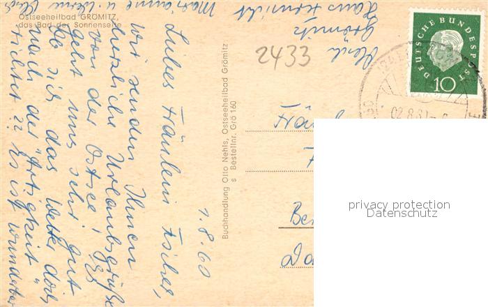73566109 alte Postkarte Groemitz Ostseebad Promenade Strandpartien Terrasse Strandhalle Kurmittelhaus Steilkueste postalisch gelaufen Erhaltung siehe scans [WerneD78] KatCode: 11110001055016