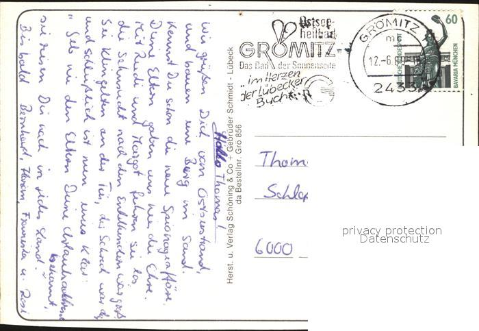 72433530 alte Postkarte Groemitz Ostseebad Promenade Strassenpartie Strand Seebruecke postalisch gelaufen Erhaltung siehe scans KatCode: 11110001055016