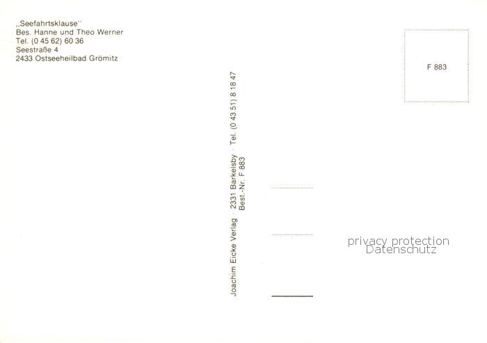 73858409 Groemitz Ostseebad Seefahrtsklause Gastraum postalisch nicht gelaufen Erhaltung siehe scans [FriedD77] KatCode: 11110001055016