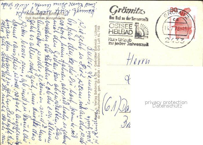 72549623 alte Postkarte Groemitz Ostseebad Strand Fliegeraufnahme postalisch gelaufen Erhaltung siehe scans [AndreD76 kv022box] KatCode: 11110001055016