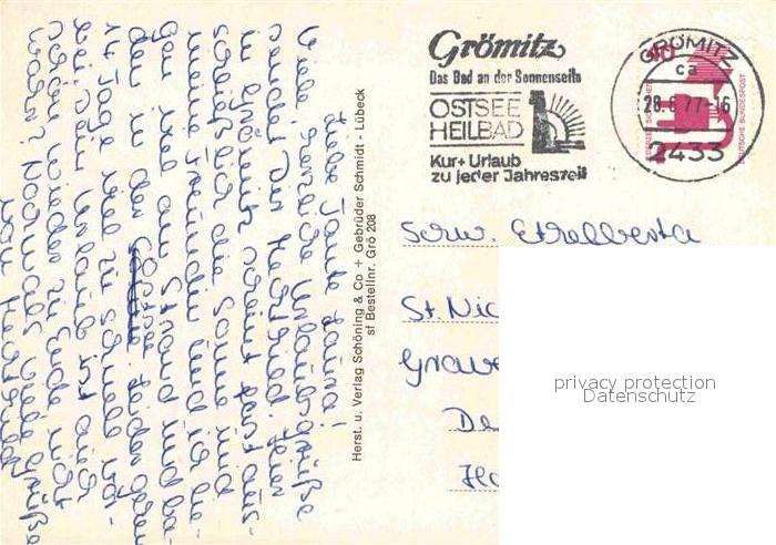 72864988 alte Postkarte Groemitz Ostseebad Strand Hafen Promenade postalisch gelaufen Erhaltung siehe scans [LiesaD40] KatCode: 11110001055016