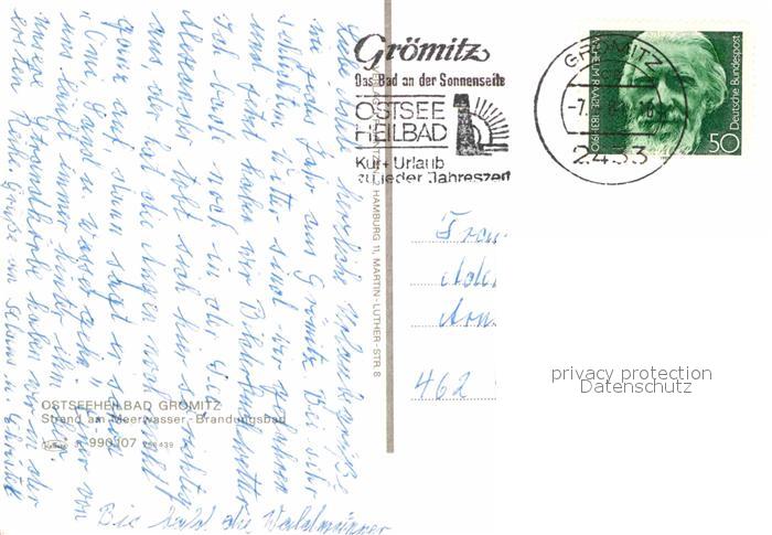 72855133 alte Postkarte Groemitz Ostseebad Strand Meerwasser- Brandungsbad postalisch gelaufen Erhaltung siehe scans [AndreD76] KatCode: 11110001055016